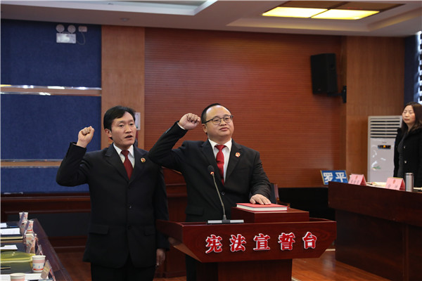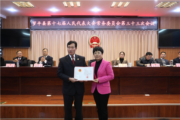 会议依法免去朱向荣罗平县人民法院执行局长职务,刘云斌罗平县人民法院审判员职务。依法任命朱向荣为罗平县人民法院副院长,杨泽益为罗平县人民检察院副检察长。高罗燕向新任命的人员颁发了任命书。随后,新任命人员向宪法宣誓并作任职表态发言。