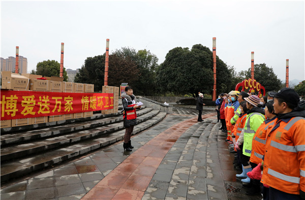 环卫工作是造福于社会和人民的一项光荣而艰辛的工作,环卫工人不畏严寒酷暑、长年累月起早贪黑,默默奉献,为城市美丽作出了积极贡献。在捐赠活动现场,县红十字会人员为他们讲解急救包的使用,并逐一发放慰问物品,处处呈现暖人的画面,暖流在心间无尽流淌。通过“博爱送万家”的方式,让环卫工人感受到了社会的关爱,在这个冬季里倍感温暖。