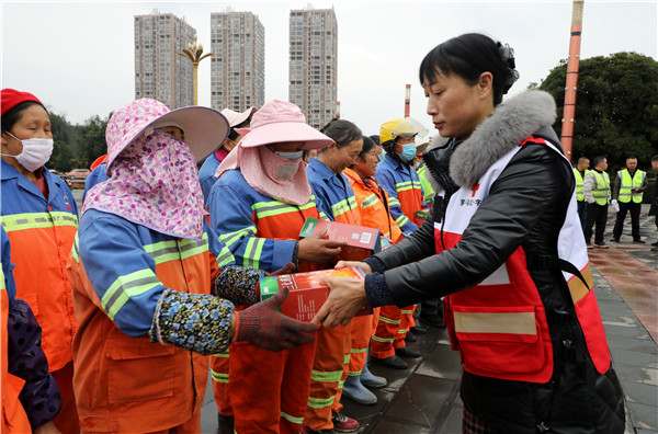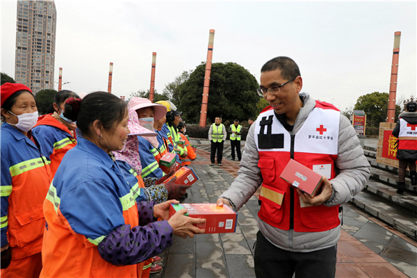 随着春节的临近,为弘扬“人道、博爱、奉献”的红十字精神,1月28日上午,罗平县红十字会举行了“博爱送万家,情暖环卫工”活动。向环卫工人送去节日的慰问和祝福,将党和政府的关心、社会各界的关爱送到环卫工人手中,让他们度过一个温暖、祥和、平安的春节。