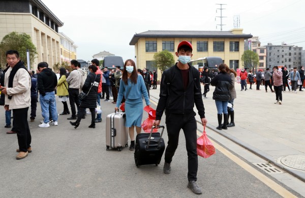 欢送仪式后,748名外出务工人员佩戴口罩、携带行李,在人社局工作人员的引导下排队有序上车,将前往上海、福建、浙江、江苏、广东5省21市务工。本次通过人社部门组织的集中外出务工的人员有748名,均可享受 “三免一补”政策,即免交通费、健康体检费、防护用品费、发放外出务工生活补贴,享受“点对点、一站式”的服务。