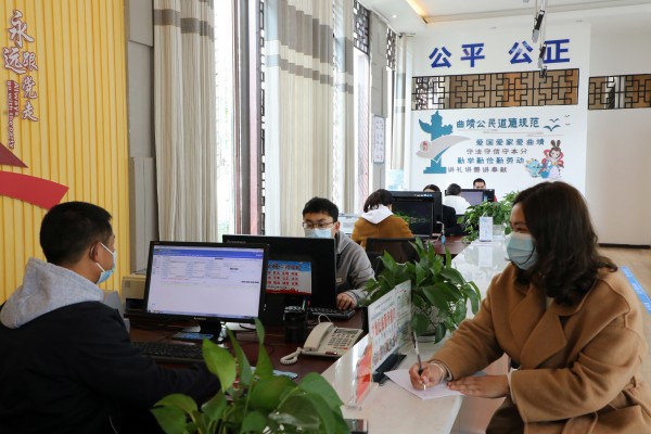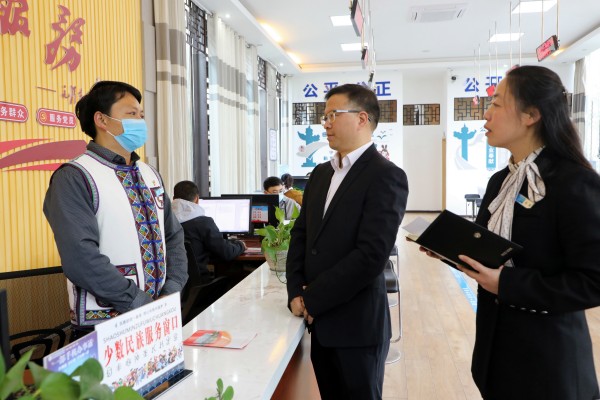 “您好,请问您需要办理什么业务?”“我需要办理关于我家住宅用地的房产证。”“好的,麻烦请提供一下相关证件。”“好的。”“您好,办理完成了,请拿好证件。”“谢谢!”这是罗平县政务服务管理局办事大厅里的双语岗位工作人员与一名前来办理业务的彝族女子的对话情景,他们全程用彝族语言交流,询问工作人员之后,才知晓他们当时交谈的内容。
