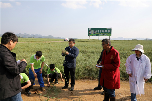 罗平县举行油菜化肥农药“双减”暨全程机械化生产核心示范样板田间测产工作