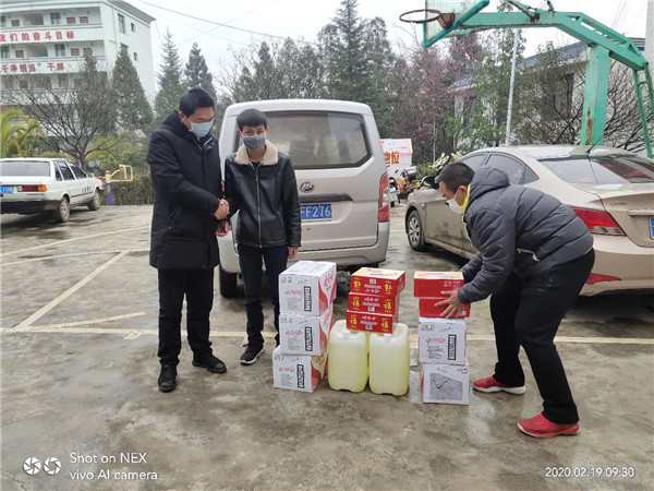 连日来,富乐镇再次收到社会各界爱心企业及爱心人士的捐赠物资,为日夜坚守防控一线的工作人员送上社会关爱,助力疫情防控。2月19日,罗平县圆满生命殡葬服务有限公司向富乐镇捐赠120瓶75%医用酒精。据了解,该公司为助力防控一线工作人员的物资供给,多方筹集采购医用酒精等防疫物资,并送到一线,积极为疫情防控阻击战助阵,大力发扬“互相帮助、共战疫情”的精神。当日,该镇还收到家住富乐镇阿洪村委会奴洼村的个体经营户吴俊捐赠的物资:消毒液2桶100斤、娃哈哈矿泉水5件、娃哈哈八宝粥5件。“我家条件也不是太好,就在街面上开个桃园华文书屋,最近这段时间,我通过手机、电视关注着武汉的疫情,看到一线医务人员无私奉献、力战疫情,不能到一线支援,但我也想尽一份自己的心意。作为一名普通群众,我应该承担起社会责任,尽些绵薄之力,我相信,在党和国家的领导下,我们团结一心,众志成城,一定能够打赢这场没有硝烟的战争!”吴俊这样说。