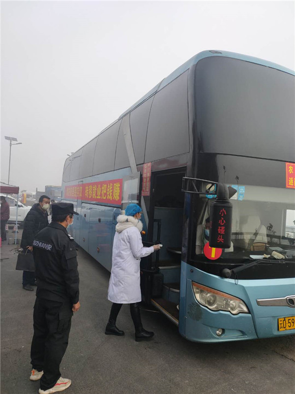 一手抓新冠肺炎疫情防控,一手抓外出务工人员输送。富乐镇人社、卫健、交通运输等部门联合,有计划、分批次对外出务工人员返岗复工进行“点对点”输送。当天上午,首批37名外出务工人员经过核实登记、测量体温、领取口罩后,统一乘坐“点对点”输送返岗就业专车,不仅防控措施到位,还有专人护送。此举既能帮助外出务工人员免费乘车、顺利返岗,又通过两地对接、全程监测和密闭输送,最大程度确保外出务工人员身体健康和生命安全。