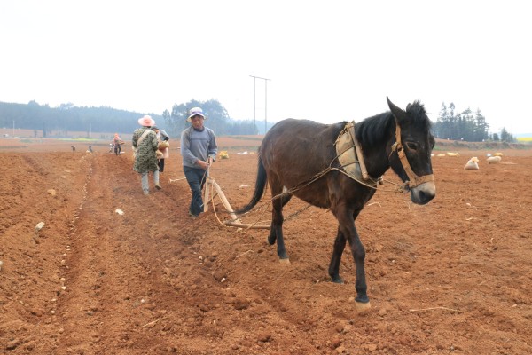 在罗平县罗雄街道新寨居委会小明寨村,农户集中连片流转土地350余亩种植小黄姜,这几天正在抓紧播种,田间地头,一片繁忙:套马拖沟、放种、覆土、施肥、起垄、清理排水沟等等。放眼望去,远处金黄的菜花与正在播种的土地交相辉映,到处充满生机勃勃的景象。