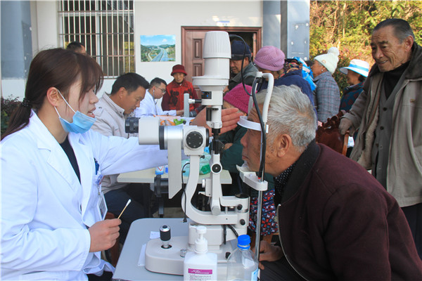 (图为:为老年人眼部义诊)