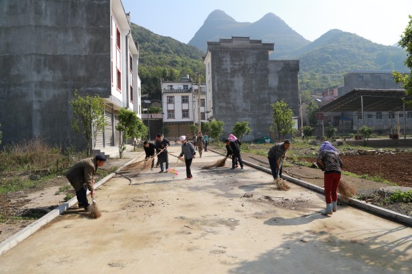 “今天早上我喊叫了一下村民,大家也积极来配合清理大扫除,一起打扫卫生,我们以后每个月都要组织村民开展一次大清扫,环境搞干净了,村中卫生干干净净,人的身体才会健康,现在政府关心把路修这么好,我们要保持给它干干净净”。养马村委会多依树村村民委员会主任李石华一早就动员全村村民来打扫村中的卫生,他说道。多依树村是养马村委会的一个自然村,全村有105户农户,在今天的环境卫生清扫中共有86人参与,除了整户外出务工和无劳动力家庭外,家家都有人参与了今天的大扫除。