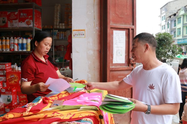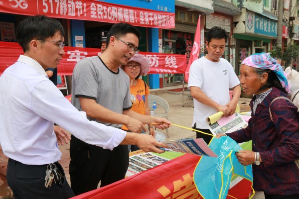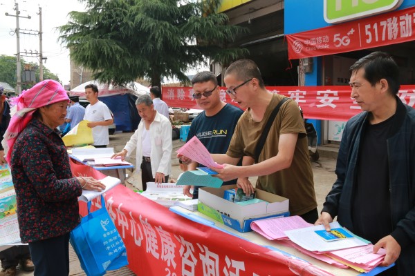 6月17日,九龙街道新时代文明实践所联合安监、农机、农科、交通、派出所、财政所、卫生院等10个部门在黄泥村委会阿鲁赶集市场开展全国第十九个“安全生产月”宣传活动。