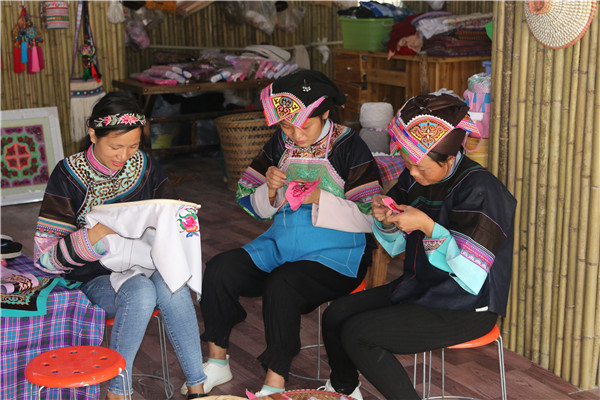 鲁布革乡为突破民族刺绣产业化组织化程度低、从业人员技术良莠不齐、经济效益转化率不高的瓶颈,制定了《鲁布革乡民族民间刺绣人才培养推进就业扶贫组织化的实施方案》,围绕“资金跟着贫困农户走,贫困农户跟着能人走,能人跟着专业合作社走,专业合作社跟着特色产业项目走,特色产业项目跟着市场走”的机制,回引了刺绣技艺出众的绣娘李文秀、李连珍、黄莲英等人。在政府引导下,以人才为依托,分别成立了罗平县布依淑娅文化开发有限公司、罗平县多依河正凤布依制品有限公司、八大河文秀布依刺绣产业合作社、罗平珍绣布依手工农民专业合作社、罗平县鲁布革布依产品专业合作社等。在公司、合作社的带动下,多依河周边村寨、江外四个村委会和接边的贵州、广西3000余名布依族妇女纷纷拿起了绣花针,利用闲暇时间,用灵巧的双手、精湛的技艺,不出户就能打工赚钱,每位妇女每月仅绣花就可挣数百元钱,绣得又快又好的,每月可收入达5000多元。现在,集中生产的绣娘有300多人,在家就业的绣娘有2000多人。合作社还根据顾客的购买需求,不断完善刺绣工艺,生产的刺绣品种类达到30余种。绣娘回引,政府主导,有效推动民族刺绣产业规模化、集约化发展,更好地带动三省区接合部党员干部群众传承民族文化、创业致富。