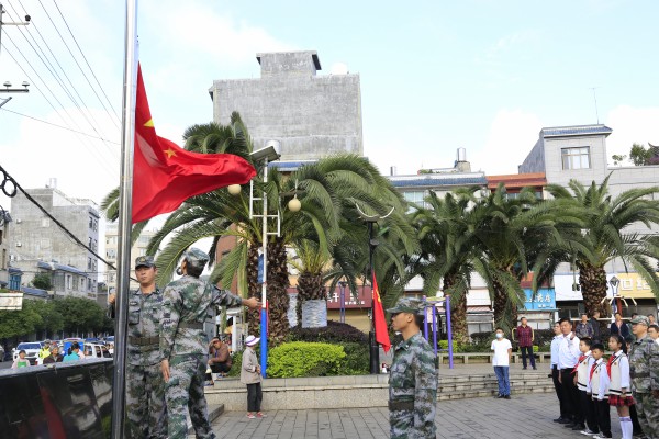 9月30日上午,板桥镇在东胜广场举行了庄严的升国旗仪式,庆祝新中国成立71周年。