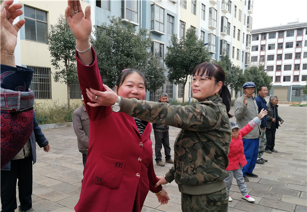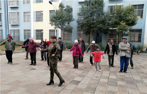 活动中,培训老师先带领着老年人做热身运动,然后反复分解演示舞蹈的各个动作,伸手、蹲、小踢腿、划圈、擦地等,并耐心手把手地教。老年人们也非常踊跃,认真的跟着学习,虽然大家刚开始不会跳,但都乐在其中。让老人们舞起来,跳起来,跳出幸福健康好生活。“我们在学跳舞的过程中,还是很快乐的,可以增进与邻里的交流,让我精神好了很多,很开心。”一位跳舞的大妈高兴地说道。