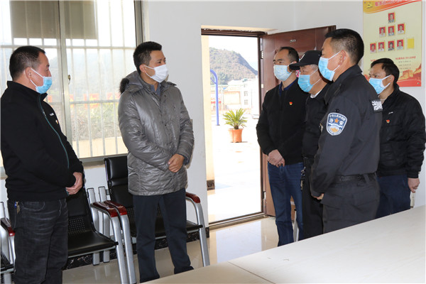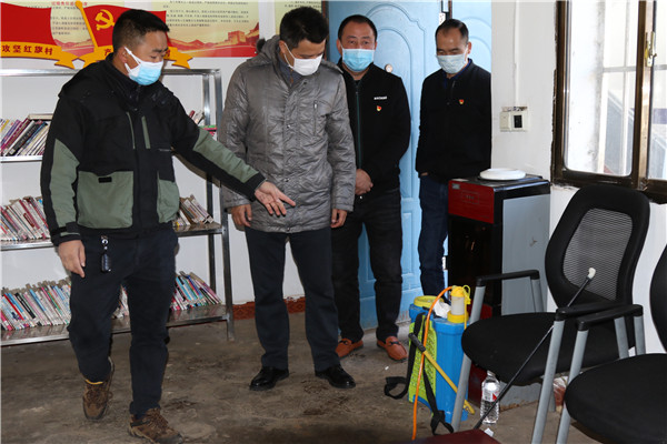 2月1日,县委常委、纪委书记、监委主任唐雷到富乐镇检查指导疫情防控工作。