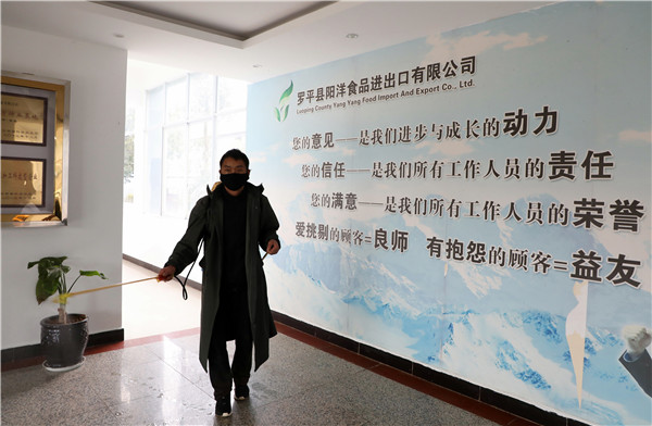 “我们公司严格按照主管部门的要求,在恢复生产之前,做好一系列的准备工作,对厂区进行全面无死角的卫生清扫、消毒杀菌工作,对员工上班进行测量体温,戴口罩及对手进行消毒,确保企业复产后能够安全生产。”罗平县阳洋黄姜有限公司董事长李光德与记者交流着。日前,记者随县工信商科局人员一同来到正在准备复工复产的罗平县阳洋黄姜有限公司,企业正认真对照有关要求,全力组织员工开展复工复产前卫生打扫、消毒杀菌、体温检测设备测试及粘贴入厂温馨提示等准备工作。随后,记者又来到云南万兴隆生物科技有限公司,在厂区入口处,工作人员全副武装、分工明确、各司其职,对入厂人员进行体温测量登记,建立台账,并对手部及脚底进行消毒,要求入厂的人员正确佩戴口罩,同时对厂区出入车辆进行消毒。走进厂区,看到消毒人员正对各区域进行全方位消毒,做实复工复产前的准备。