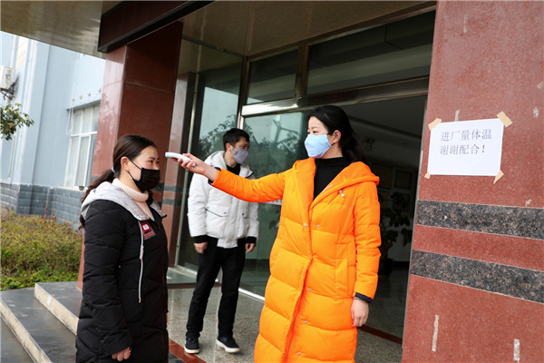 “我们对全县工业企业复工复产的要求是要达到10个标准,主要是全面排查省外人员,建立员工登记台账,认真开展员工健康状况的排查工作,确保员工健康安全的投入生产。”工信商科局副局长余娟与记者边走边聊,“在开工前要求对工作区域和职工宿舍进行全方位的消毒杀菌,全体职工必须正确佩戴口罩方可上班,没有佩戴口罩的是一律不得入厂区,还要有足够的疫情防控物资储备……提交书面申请,逐级审核通过才可以复工复产。”