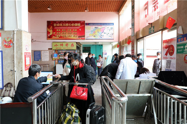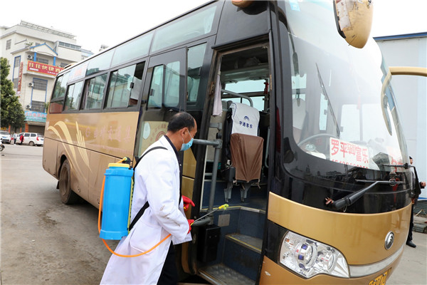 “我们曲靖交通集团罗平分公司从2月22号正式开始售卖罗平至昆明、罗平至曲靖、师宗、陆良、富源的班线,全县农村客运也全部开始运营。目前,除少数几条受疫情影响暂时没有运营的外,都基本正常运营。”曲靖交通集团罗平分公司经理陈勇告诉记者,“我们对进站乘客进行体温检测、登记,要求乘客用手机扫描‘云南抗疫情’小程序二维码,旅客必须佩戴口罩,用身份证进行实名购票以后录入电脑信息,然后进站乘车,每辆车发班之前,工作人员都要对车辆进行全面消毒。”