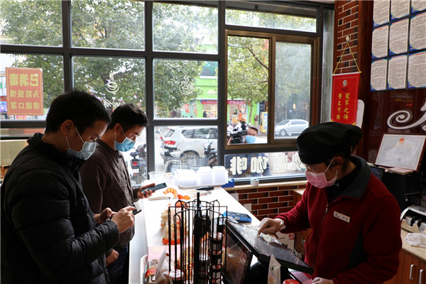 据悉,在餐饮店开门营业之前,店里员工对座椅、厨房等公共区域进行了严格清扫消毒灭菌,在门口张贴醒目标志,提醒消费者佩戴口罩并测量体温,若发现体温异常者及时做好登记并向有关部门报告。受疫情影响,各餐饮店外卖订单居多,他们采用‘无接触’式配送、‘无接触’点取餐的方式,在每单外卖上标注了制作人、装菜人、外卖小哥的体温等信息,有效保障了配送食品安全。