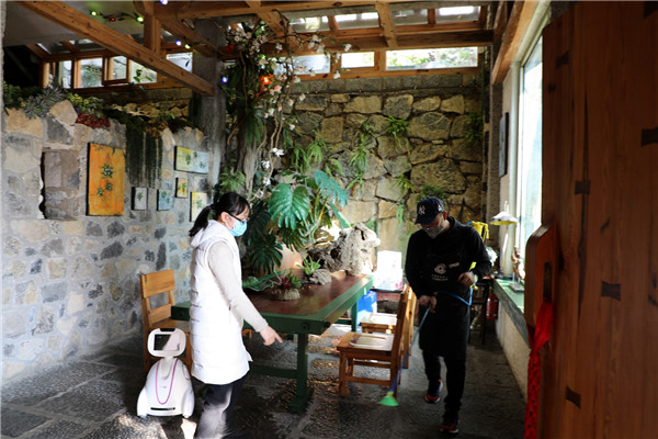 “我们21日接到《关于全面恢复正常生产生活秩序的通告》后,非常高兴,终于可以恢复正常生活了。一下午就开始对店里公共区域进行全面消毒,在店门口张贴‘云南抗疫情’二维码,安排店员专门负责提醒指导顾客出入扫码,并提醒顾客套好口罩,积极配合做好疫情防控工作”服装店负责人说道。