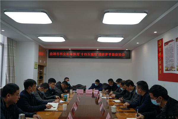 座谈会上,罗平县林草局负责人对“十三五”期间的林业工作做总结,对“十四五”规划从营造林、草原修复项目、森林质量提升、自然保护地、森林城市建设、木本油料基地、林下经济经营、石漠化综合治理项目及“十四五”基础设施、民生、产业等重点任务、重大工程和重要项目(经济林产业、林下经济产业、罗平县水沟林场森林公园建设、观赏苗木及花卉产业、林产业加工产业、林业碳汇项目)等方面做情况报告。调研组对罗平县“十三五”期间的工作给予充分肯定,对“十四五”规划作指导。