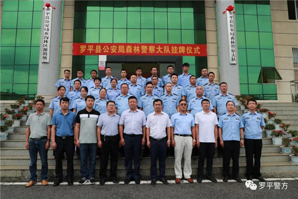 7月10日,罗平县公安局森林警察大队举行揭牌仪式,宣告森林警察大队正式成立!县委常委、政法委书记李昕翰出席仪式并致辞,县人民政府副县长、公安局党委书记、局长李振林主持揭牌仪式,县委组织部、县委政法委、县委编办、县财政局、县人社局、县林草局、县公安局的相关领导,以及森林警察大队全体人员出席揭牌仪式。