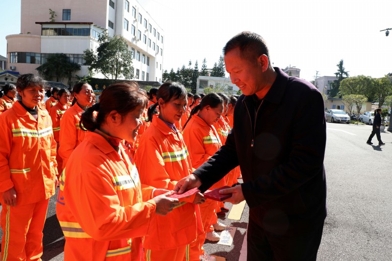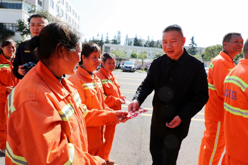 在阵阵掌声中,县四班子领导亲切看望慰问了坚守在一线的环卫工人,为大家送去新春慰问金和美好的祝福。海建才向长期以来起早贪黑、辛勤耕耘、无私奉献、默默付出的环卫工人致以崇高的敬意,感谢他们为创健全国文明城市、建设美丽罗平作出的贡献。希望大家在新的一年里,能够继续发扬无私奉献精神,爱岗敬业、努力拼搏、再创佳绩,为提升全县城市形象和城市品质贡献环卫力量,让全县人民过一个干净、整洁、祥和的春节。